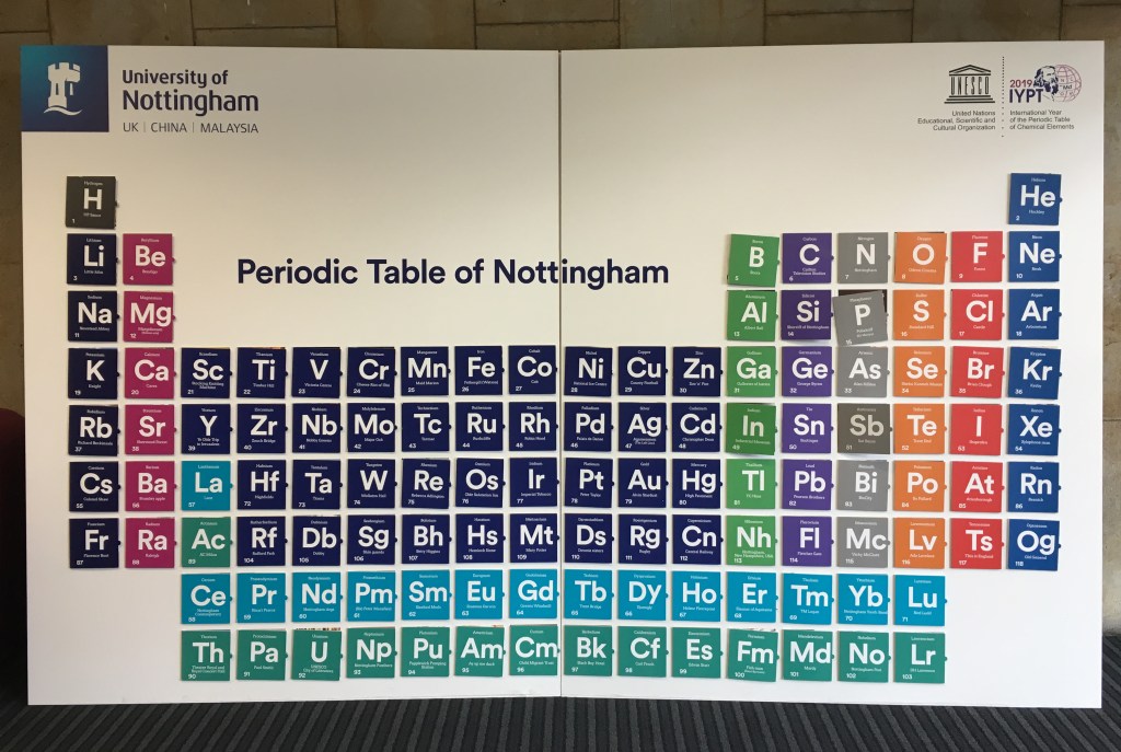 When I was in Nottingham last year I took a quick snap of the Periodic Table of Nottingham where all element symbols stand for something associated with the city. I looked at sulfur, S, to see if it stood for Shaw (but it is Standard Hill) but didn’t have time to study the table much further at that point. On coming back to the picture I am delighted to spot that caesium, Cs, has been assigned to Colonel Shaw; an element that is appropriately explosive when mixed with water as this Periodic Video shows: